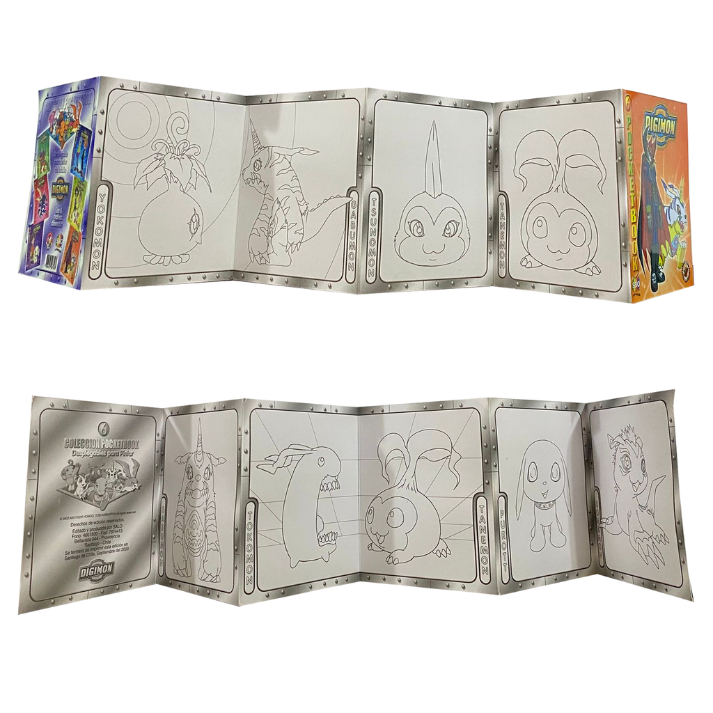 En el interior del desplegable, encontrarás a Gabumon, Tokomon, Tanemon, Purott, Gomamon, Yokomon, Gabumon, Tsunomon y Tanemon para colorear.